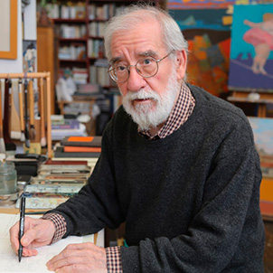 Manuel Alcorlo (Madrid, 1935) fue un pintor, grabador, dibujante e ilustrador español reconocido por su imaginación, humor y una obra de fuerte carga figurativa y expresionista. Se formó en la Escuela de Artes y Oficios, la Escuela de Cerámica de la Moncloa, el Círculo de Bellas Artes y la Escuela Superior de Bellas Artes de San Fernando de Madrid, y desde sus inicios destacó por un universo creativo que combina fantasía, ironía y observación de la vida cotidiana.